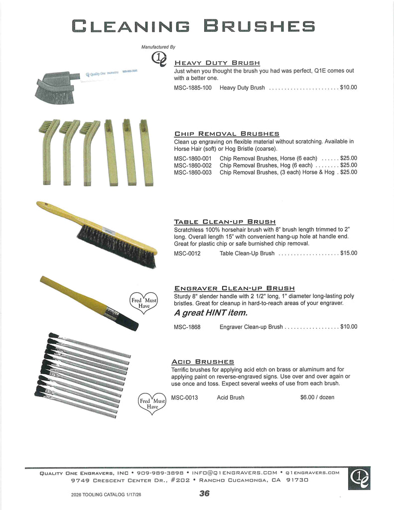 If other items required and not seen call 909-989-3898 or email info@q1engravers.com for possible new products and future additions.