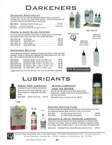 If other items required and not seen call 909-989-3898 or email info@q1engravers.com for possible new products and future additions.
