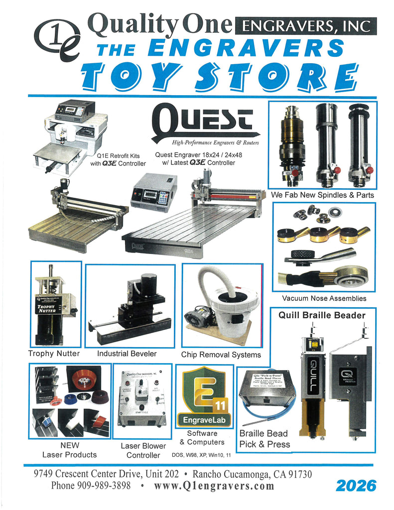 Products available from Quality One Engravers, but not limited to. Please call or email info@q1engravers.com if not in catalog.