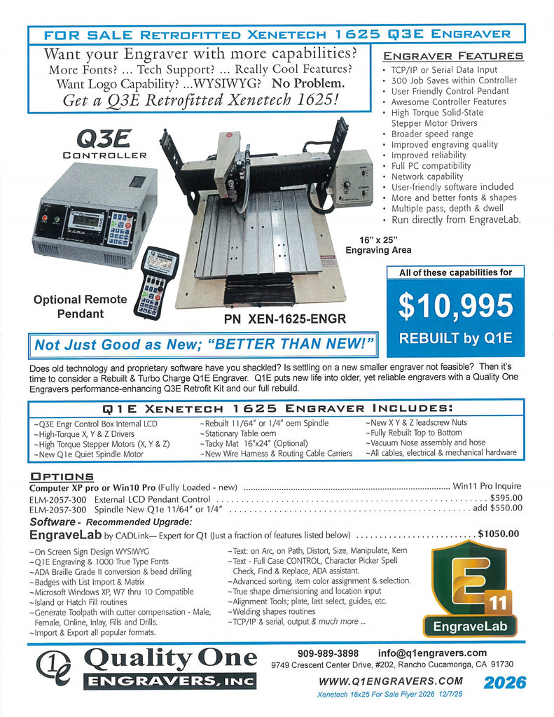 Q3E Xenetech Retrofitted Engraver 1625