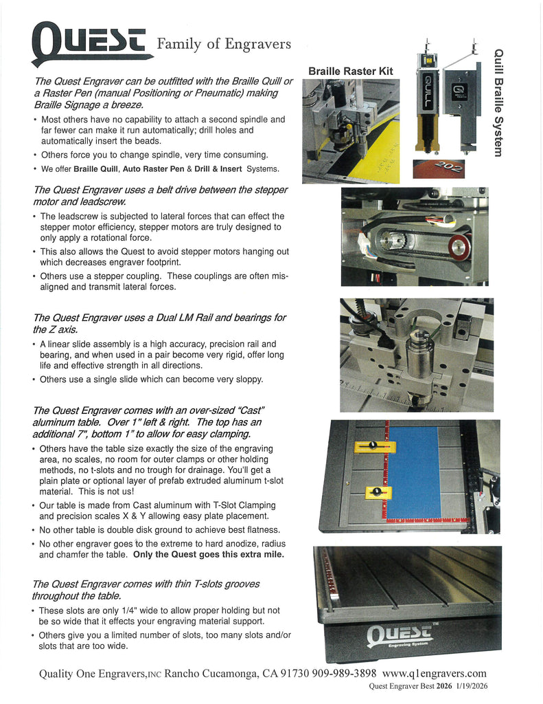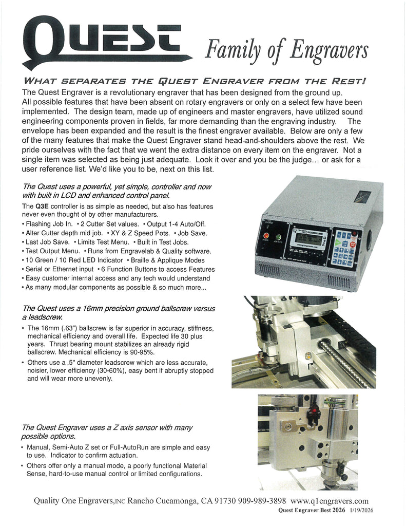 What makes the Quest Engraver superior to all other engravers! It can be used as an engraver or a router with the highest precision of any engraver in the industry.